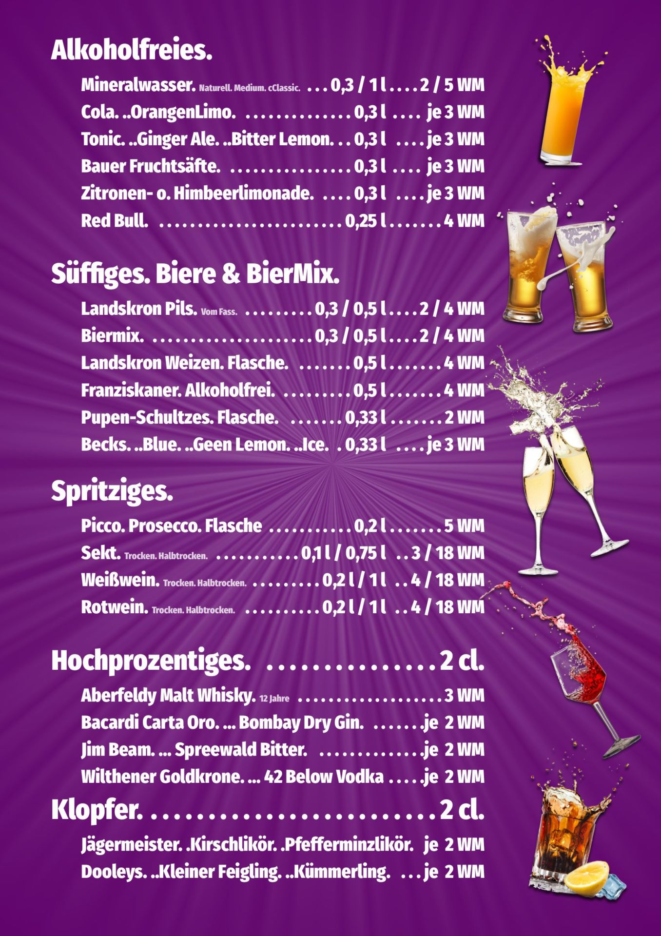 Unsere Getränke- und Cocktail-Auswahl erhalten Sie an allen 5 StadthallenBars.