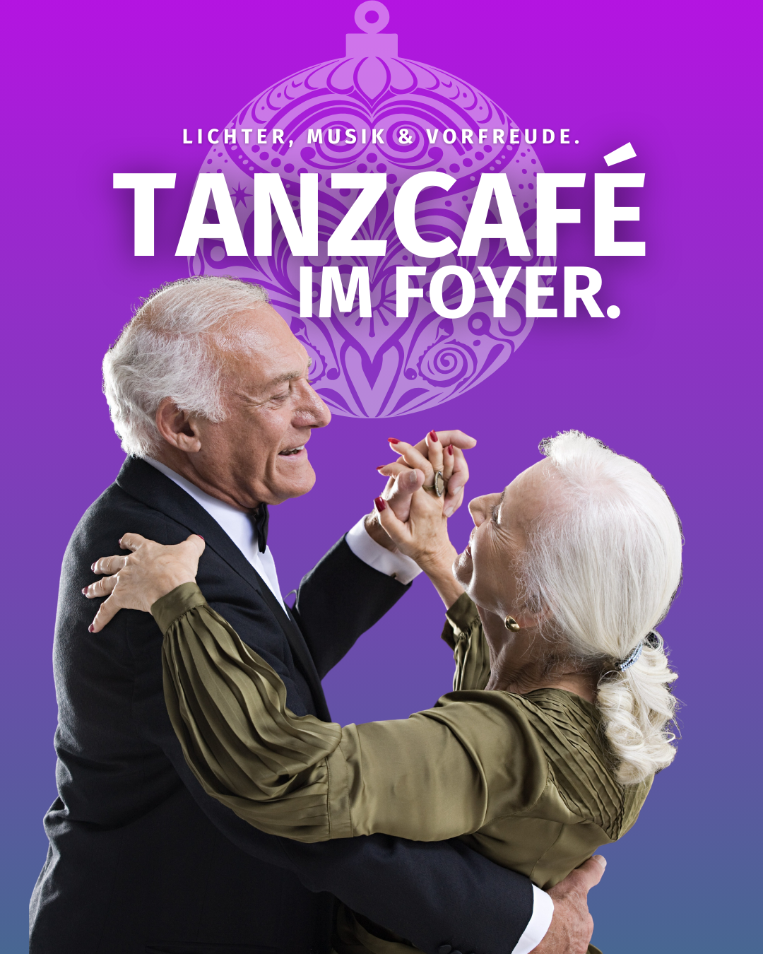 Bevor die Adventszeit so richtig beginnt, laden wir Sie zu einem stimmungsvollen Nachmittag ein. Warme Klänge, schwungvolle Rhythmen und eine Prise Vorfreude auf die festliche Jahreszeit schaffen die passende Atmosphäre. Bei Kaffee, Kuchen – und wer mag, auch einem Glas Glühwein – genießen wir gemeinsam Musik, Tanz und Begegnungen. Ein Nachmittag voller Lichter, Musik und Geselligkeit, der Sie sanft in den Advent begleitet.
